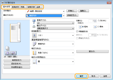 根據需求指定列印設定,然後按一下 [確定]。