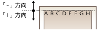 指定列印位置偏移方向和偏移寬度。設定值「+」或「-」會決定調整裝訂邊界的裝訂邊。裝訂邊界可以 0.5 mm 為單位增減調整。