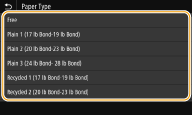 If you frequently need to change the paper to be loaded, set to <Free>; this will reduce the number of steps required to change the setting each time. However, take note that this setting lets the machine perform printing even if there is mismatch between the paper type setting in the printer driver and the paper type actually loaded in the machine.
