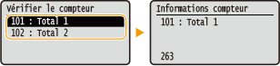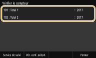 <Service de suivi> Active les communications avec un serveur de contrôle à distance. L'exécution de cette option permet l'envoi périodique d'informations sur l'appareil au serveur de contrôle à distance connecté à l'appareil. <Vér. conf. périph.>Vous permet de vérifier les unités en option installées sur l'appareil. |