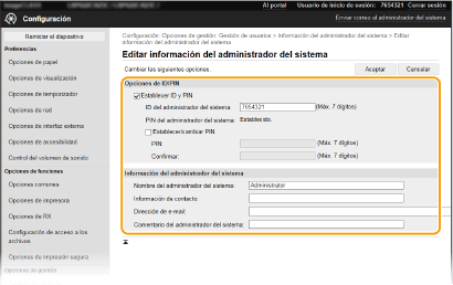 Algunas de las opciones solo pueden cambiarse si ha iniciado sesión en el Modo de administrador del sistema. Algunas opciones podrían requerir unas operaciones distintas a las descritas en este procedimiento. |