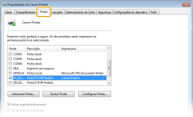 Na guia [Portas], verifique se a caixa de seleção [Ativar suporte bidirecional] está marcada.