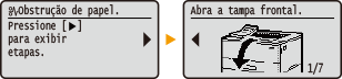 Em alguns casos em que ocorre um erro, são exibidas instruções sobre como reagir a este erro. Siga as instruções na tela para resolver o problema. A tela exibida quando ocorre um encravamento de papel está exibida abaixo como um exemplo.