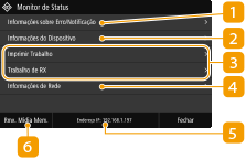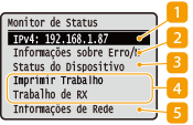 É possível especificar se deseja exibir o endereço IP na tela <Monitor de Status> por meio da configuração de <Exibir Endereço IP>.