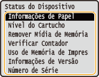 <Remover Mídia de Memória>Usado para remover com segurança um dispositivo de memória USB. Só é exibido quando um dispositivo de memória USB está conectado à máquina.