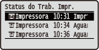 Exibe o status atual do item selecionado. A tela <Status do Trab. Impr.> é exibida abaixo como um exemplo.