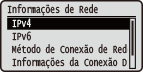 Exibe as definições de rede como, por exemplo, o endereço IP da máquina, e status como, por exemplo, as condições das comunicações LAN sem fio.