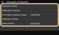 <Uso de Mem. de Impressão Segura>Exibe a quantidade de memória atualmente usada para armazenar dados de documentos protegidos.