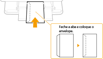 Carregue os envelopes monarca, COM10, DL, ou ISO-C5 na orientação retrato (com as bordas curtas voltadas para a máquina), com o lado sem cola (lado frontal) voltado para cima. Você não pode imprimir no lado inverso dos envelopes.