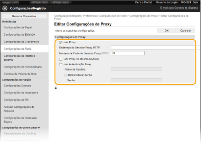 Marque a caixa de seleção [Usar Proxy] e especifique as definições necessárias.