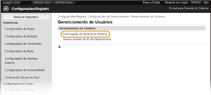 Clique em [Configurações/Registro] na página do Portal.