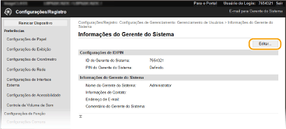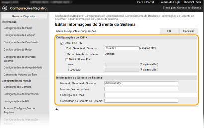 Algumas configurações só podem ser alteradas quando você estiver logado no modo Administrador do Sistema. Algumas configurações podem exigir operações cujos procedimentos diferem daqueles descritos aqui. |