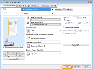 Especifique as definições de impressão conforme necessário e clique em [OK].