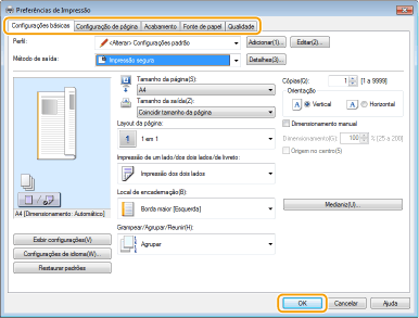 Especifique as definições de impressão conforme necessário e clique em [OK].