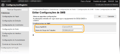 O nome do grupo de trabalho é o nome para o agrupamento de computadores para que as funções de rede básicas, como o compartilhamento de arquivos, fique disponível na rede Windows. Especifique o nome do grupo para identificar o grupo pertencente à máquina.