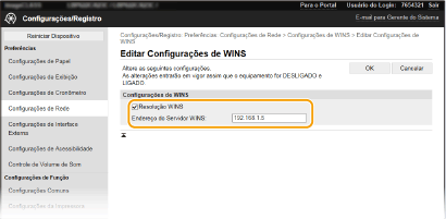 Se o endereço IP do servidor WINS for obtido de um servidor DHCP, o endereço IP obtido sobrescreve o endereço IP inserido na caixa de texto [Endereço do Servidor WINS].