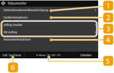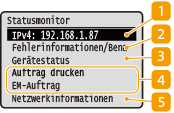 Sie können festlegen, ob die IP-Adresse auf dem Bildschirm <Statusmonitor> durch Einstellung von <IP-Adresse anzeigen> angezeigt werden soll.