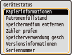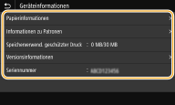 Diese Option zeigt die Netzwerkeinstellungen, wie die IP-Adresse des Geräts und den Status, wie den Zustand der Wireless LAN-Kommunikation, an.