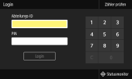 Wenn die Verwaltung per Abteilungs-ID oder die Systemmanager-IDs aktiviert sind, müssen Sie sich vor Verwendung des Geräts anmelden. Wenn der Anmeldebildschirm angezeigt wird, gehen Sie folgendermaßen vor, um die Abteilungs-ID und PIN einzugeben.