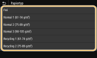 Wenn Sie das einzulegende Papier häufig wechseln müssen, können Sie <Frei> festlegen. Dies reduziert die Anzahl der Schritte, die erforderlich sind, um die Einstellung jedes Mal zu ändern. Beachten Sie jedoch, dass das Gerät anhand dieser Einstellung druckt, auch wenn die Einstellung des Papiertyps im Druckertreiber und des tatsächlich eingelegten Papiertyps im Gerät nicht übereinstimmt.