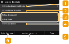 Puede especificar si desea mostrar la dirección IP en la pantalla del <Monitor de estado> configurando <Mostrar dirección IP>.