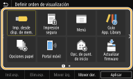 Puede cambiar el orden de visualización de los elementos para facilitar el acceso a la pantalla Inicio y personalizar la pantalla Inicio.