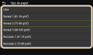 Si tiene que cambiar con frecuencia el papel a cargar, puede especificar <Libre>; así se reducirá el número de pasos necesarios para cambiar la configuración cada vez. Sin embargo, tenga en cuenta que, con esta configuración, la impresora puede imprimir aunque no coincida la configuración del tamaño de papel especificado en el controlador de impresora y el tipo de papel cargado realmente en el equipo.