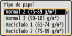 Si la configuración del tipo de papel en el controlador de impresora es [Auto], el equipo funciona del mismo modo que si el papel es [Normal 1].