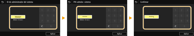 2 | Introduzca el nombre del administrador del sistema y seleccione <Aplicar>. Para obtener información sobre cómo introducir el texto, consulte Introducción de texto. |