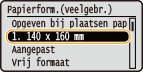 De papierformaten die u met de bovenstaande procedure registreert, worden weergegeven in het scherm voor het selecteren van het papierformaat van de papierlade of de multifunctionele invoer.