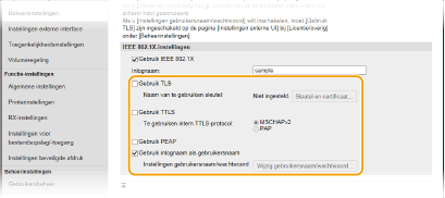 Schakel het selectievakje [Gebruik IEEE 802.1X] in, en typ de aanmeldingsnaam in het vak [Inlognaam].
