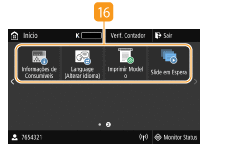Prima para verificar o estado da impressão, para ver o histórico de utilização ou para ver as definições de rede (por exemplo, o endereço IP da máquina). Também pode verificar o estado da máquina (por exemplo, a quantidade restante de papel e a quantidade restante nos cartuchos de toner) ou a ocorrência de erros. Ecrã <Monitor de Status>