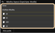 Εάν το μέγεθος του χαρτιού που έχετε τοποθετήσει δεν εμφανίζεται, πατήστε <Άλλα μεγέθη>.