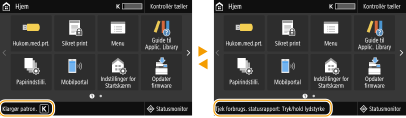 Der vises meddelelser på skærmen i situationer, som f.eks. når der ikke er mere papir, eller hvis tonerpatronens levetid er ved at udløbe. For mere information henvises til "Fejlfinding (FAQ)" på hjemmesiden for online-manualer.