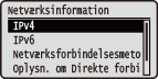 Viser netværksindstillinger som f.eks. maskinens IP-adresse og status såsom tilstanden for trådløs LAN-kommunikation.