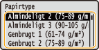 Hvis du ofte ændrer formatet for det ilagte papir, kan du angive <Frit>, hvilket reducerer antallet af nødvendige trin med at ændre indstillingen af papirtypen, hver gang du udskriver. Bemærk dog, at med denne indstilling kan maskinen udskrive, selvom der er uoverensstemmelse mellem indstillingen for papirtypen i printerdriveren og den papirtype, der rent faktisk er lagt i maskinen.