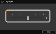 Du kan endre en rekke skjermrelaterte innstillinger, som skjermspråket: <Displayinnstillinger> Du kan endre hvilken skjerm som automatisk vises når maskinen står inaktiv i et angitt tidsrom: <Funksjon etter auto-nullstilling> Du kan endre ulike innstillinger for brukervennligheten, som skjermens lysstyrke: <Tilgjengelighet> |