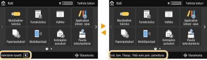 Näytössä näytetään viestejä tilanteissa, kun esimerkiksi paperi loppuu tai väriainekasetin käyttöikä päättyy. Katso lisätietoja online-opassivuston kohdasta Vianmääritys (FAQ).