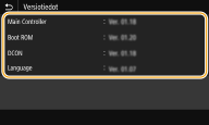 Laiteohjelmistoversion tarkistaminenVoit tarkistaa laiteohjelmistoversion laitteen käyttöpaneelista. Kun laiteohjelmisto on päivitetty, varmista, että päivitys suoritettiin oikein. Laiteohjelmistoversion tarkistaminen |