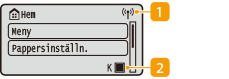![]() | Ikonen Wi-FiVisas när enheten är ansluten till ett trådlöst nätverk. Återstående toner i tonerpatronernaVisar i olika steg hur mycket toner som återstår. Knappen är dold när Hem-skärmen är aktiv. |