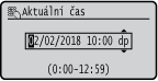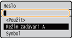 Zadávání hodnot pomocí  / . Pokud se v levém horním rohu zobrazí ikona, jakou ukazuje obrázek níže, můžete zadat hodnoty přímo pomocí číselných tlačítek. Zadávání textu