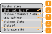Můžete zadat, zda zobrazovat IP adresu na obrazovce <Monitor stavu> nastavením možnosti <Zobrazit adresu IP>.