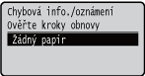 Ukazuje podrobné informace o vzniklých chybách. Více informací viz „Odstraňování problémů (FAQ)“ na webu s online příručkami.
