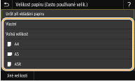 Pokud se velikost vloženého papíru nenachází mezi zobrazenými možnostmi, vyberte možnost <Jiné velikosti>.