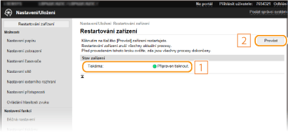 Zkontrolujte [Stav zařízení], abyste se ujistili, že se nezpracovávají žádné funkce a klikněte na možnost [Provést].