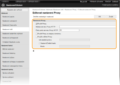 Zaškrtněte políčko [Použít Proxy] a zadejte požadovaná nastavení.