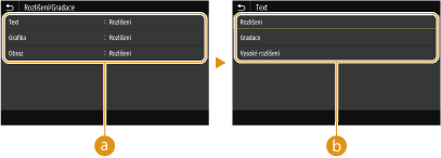 Možnost <Jemné nastav.> nebo <Sytost (Jemné nastav.)> lze použít k nastavení sytosti toneru na tři úrovně sytosti: vysoká sytost, střední sytost a nízká sytost.