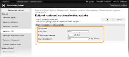 Změňte číslo portu pro tuto funkci podle prostředí sítě. [Počet routerů na trase]