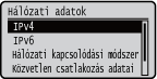 Hálózati beállításokat, például a készülék IP-címét, valamint állapotokat, például a vezeték nélküli helyi hálózati kommunikáció állapotát jeleníti meg.