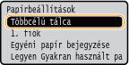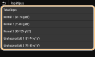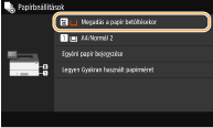 Az alapértelmezett papírbeállítás bejegyzése után a papírok behelyezésekor nem jelenik meg a papírbeállító képernyő, a készülék mindig ugyanazt a beállítást alkalmazza. Ha a papírbeállítások módosítása nélkül helyez be más méretű vagy típusú papírt, akkor a készülék valószínűleg nem megfelelően fog nyomtatni. A probléma kikerüléséhez válassza a <Megadás a papír betöltésekor> lehetőséget a 3. lépésben, majd töltse be a papírt.